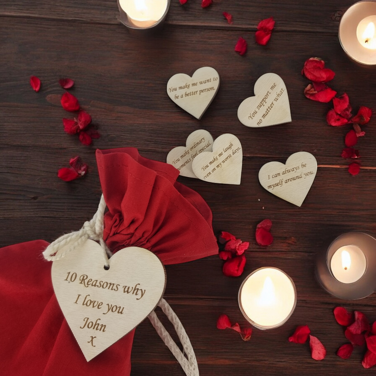 Express your love with this heartfelt collection of engraved wooden hearts, each featuring a unique reason why you adore your special someone.