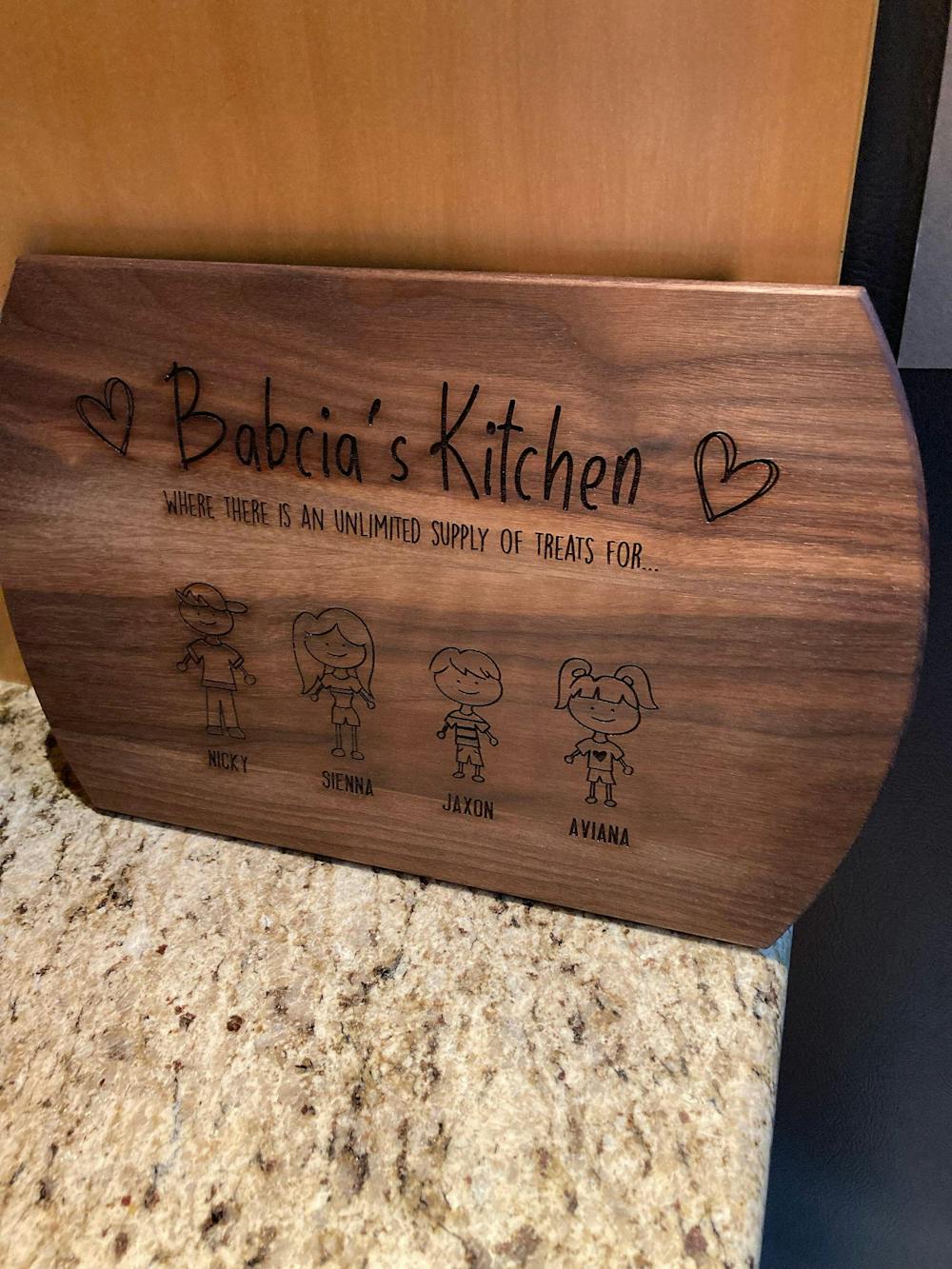I ordered this customized cutting board for my daughter in law’s birthday present. I was VERY impressed by how it looked! It was EXACTLY what I ordered!! Very well made and beautiful.