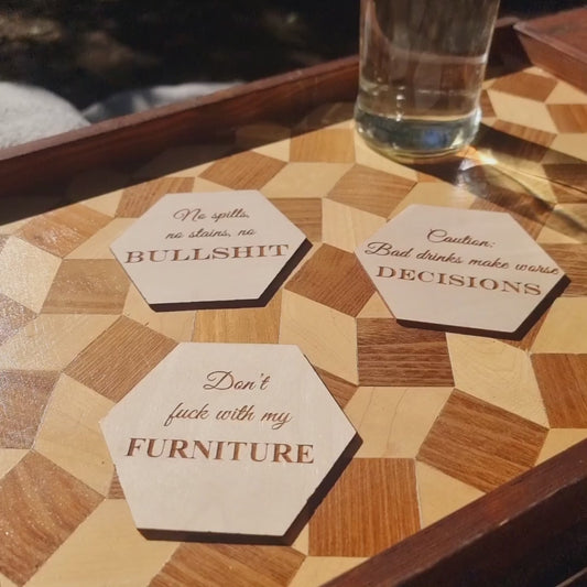 Funny Wooden Coaster Set With Sarcastic Quotes