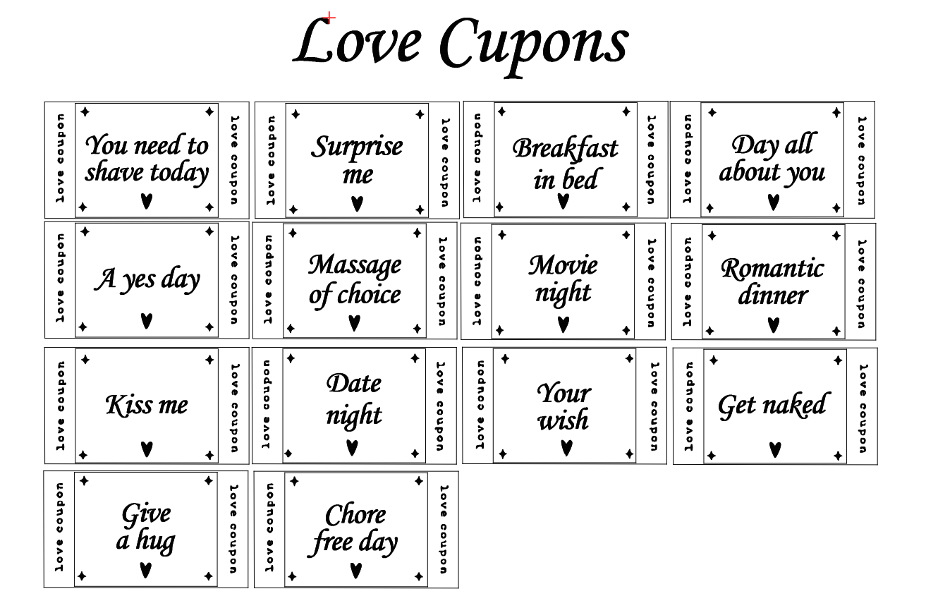 Turn everyday love into unforgettable memories with our beautifully designed Love Coupons! 🎁✨ Inside a charming heart-shaped box 💖, you’ll find sweet and playful gestures like “Breakfast in Bed 🥞,” “Movie Night 🎬,” or “Chore-Free Day 🧹.” Perfect for anniversaries, Valentine’s Day, or just because 💕, these coupons are the cutest way to surprise your partner and add a little magic to your relationship. 🌟 Give the gift of love, laughter, and connection—one coupon at a time! 💌