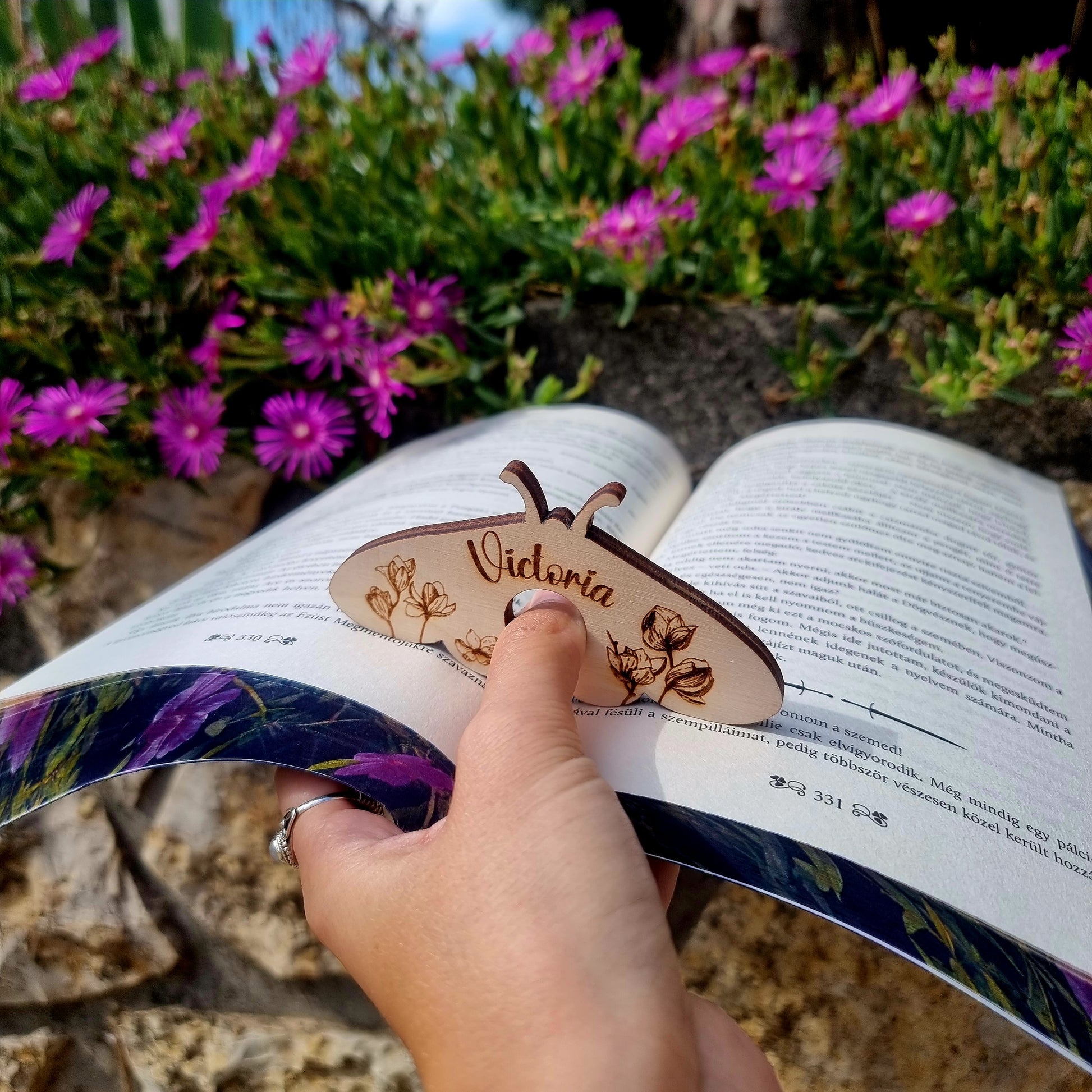 Personalized Moth Page Holder & Custom Wooden Bookmark Set