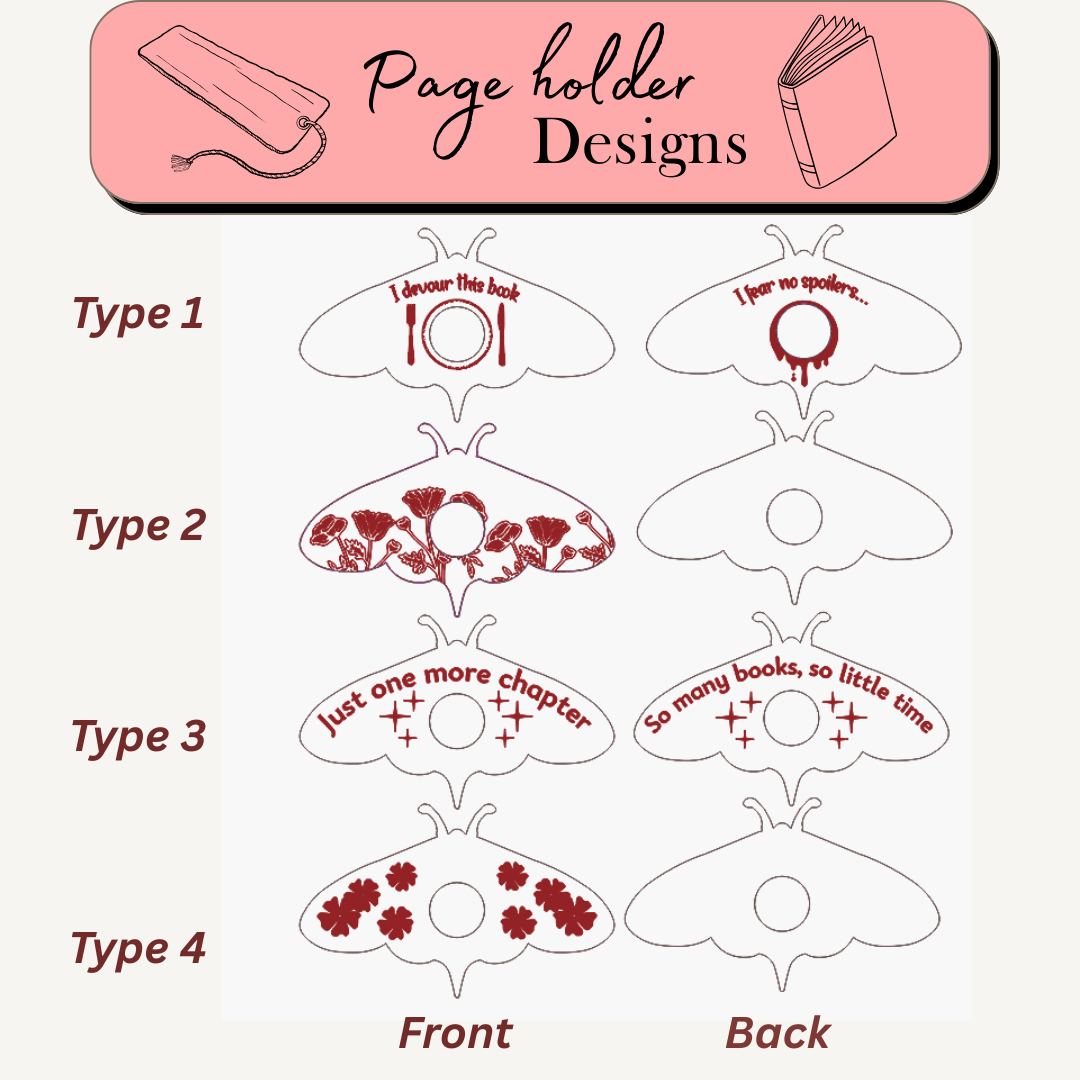 Moth Page‑Holder — choose from eight unique moth designs (Type 1, 2, 3, 4, 5, 6, 7 or 8) to hold your page with charming flair.